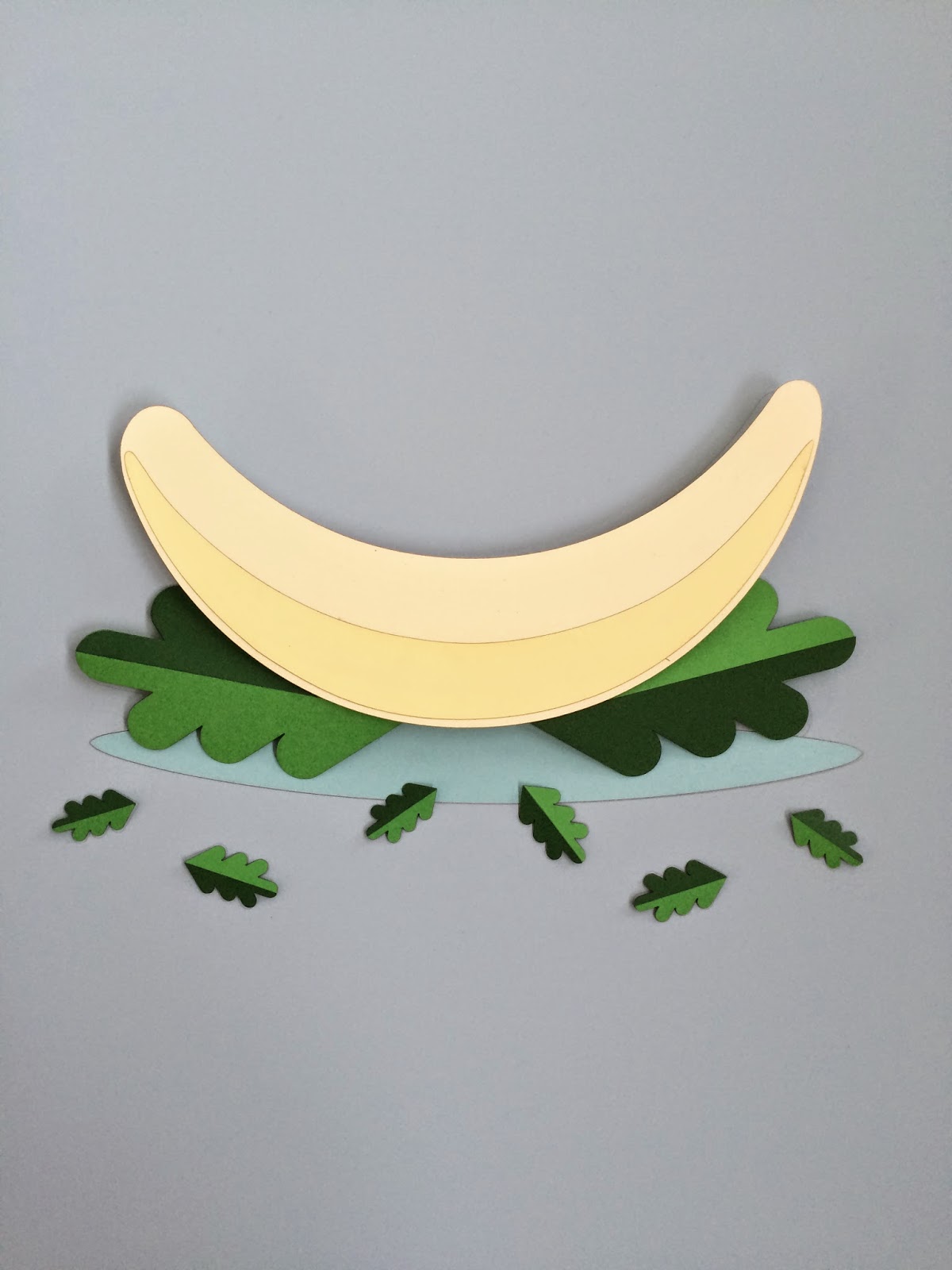 I finished glueing the smaller leaves for the second poster and Dan re-cut the banana skin. He managed to get the peel nice and curved which I think looks really good.