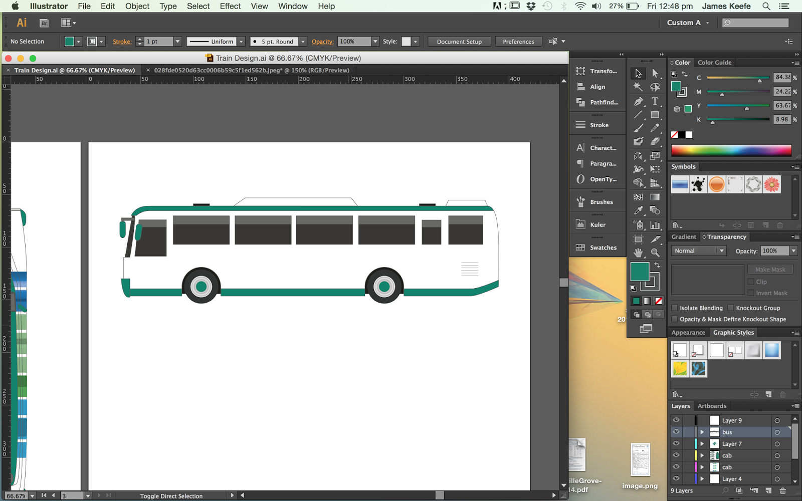 I didn't want to use a real image of a train because I think it never looks good enough quality so I have created my own illustrator image to mock the design up.